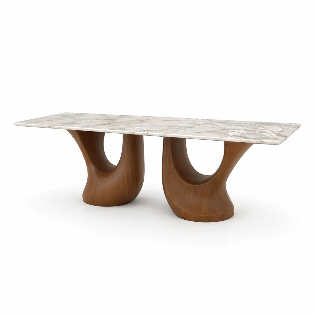 What makes this table stand out right away is its unique base design. Crafted with smooth, curved forms in a rich walnut wood finish, the base has a soft, flowing shape that feels both modern and artistic. It adds depth and movement to the space without feeling heavy, creating a perfect balance between bold design and everyday practicality.